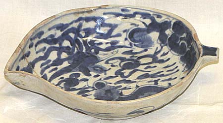 青花鳳龍文桃葉形皿(清末期時代、AD1875〜1911)