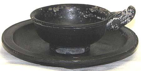 山西地方で作られた黒陶の杯と托で、発掘物のためややかせが見ら