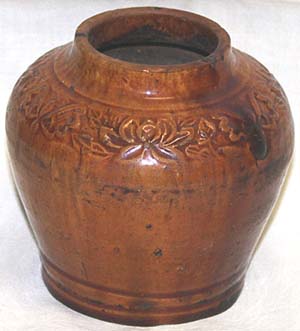 黄褐釉浮彫蓮花文小壺(遼時代、AD907〜1125)