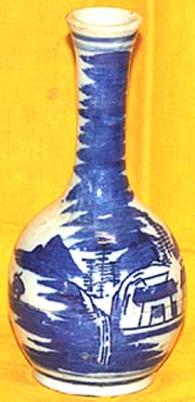 青花山水文長頸瓶V(清後期時代、AD1851〜1874)
