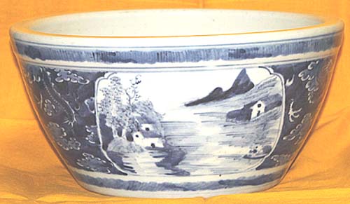 青花雲龍文開光山水圖馬桶形鉢(清後期時代、AD1851〜1874)