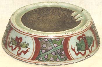青白磁釉粉彩古玩文丸陶硯(清後期時代、AD1851〜1874)