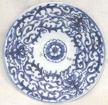 青花花唐草文皿(清中期時代、AD1796〜1850)