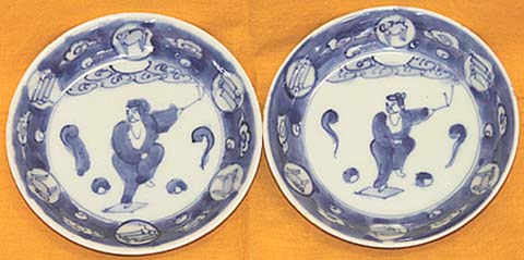 青花太公望圖小皿二枚(清末期時代、AD1875〜1911)