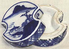 青花山水圖分銅形合子(民國以後、AD1950〜1990)