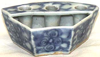 青花淡描花草文扇形水盂筆立(清後期時代、AD1851〜1974)