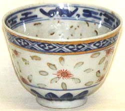青花五彩花卉文玲瓏瓷杯(民國時代、AD1912〜1949)