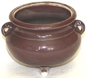 紫(茶)釉象耳三足小薫爐(清後期時代、AD1851〜1874)