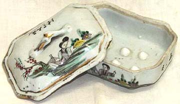 粉彩仕女圖有蓋石鹸罐(民國時代、AD1912〜1949)