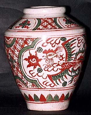 倣元赤絵火薬壺(明末期時代、AD1621〜1661)