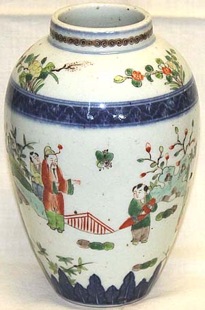 倣康煕青花五彩人物花卉文壺(清末期時代、AD1875〜1911)
