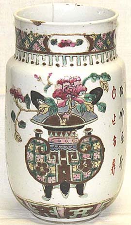 粉彩花壺文筒瓶(民國時代、AD1912〜1949)