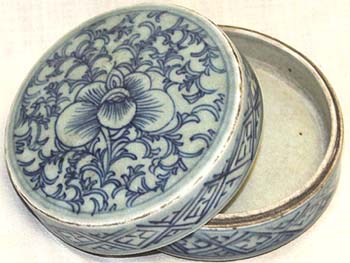 冬青釉青花淡描纏枝牡丹文圓形合子(清末期時代、AD1875〜1911)