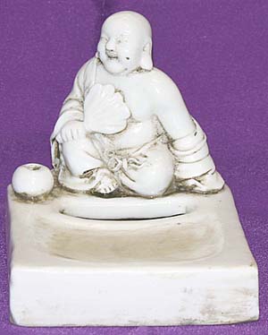 徳化窯白磁布袋像硯屏付方陶硯(清末民初時代、AD1875〜1921)
