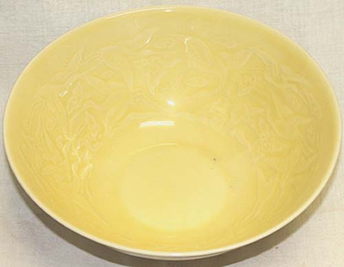 黄釉浮彫雲鶴文鉢(清末期時代、AD1875〜1911)