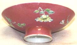 臙脂紅釉地粉彩花卉文皿杯(清末期時代、AD1875〜1911)