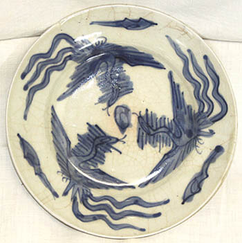 呉州手青花鳳凰文皿U(明末期時代、AD1621〜1661)