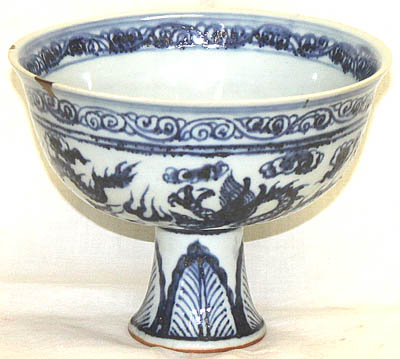 青花雲龍文高足碗(明後期時代、AD1573〜1644)