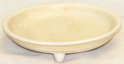 白い胎土の上に直接透明釉をかけた、小型の三足盤で、口縁
