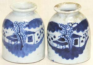 青花家屋文小壺二個(清末期時代、AD1875〜1911)