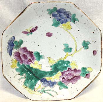 粉彩花鳥文八角皿(康煕年間、AD1662〜1722)