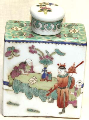 粉彩人物文有蓋扁方罐壺(同治年間、AD162〜1874)