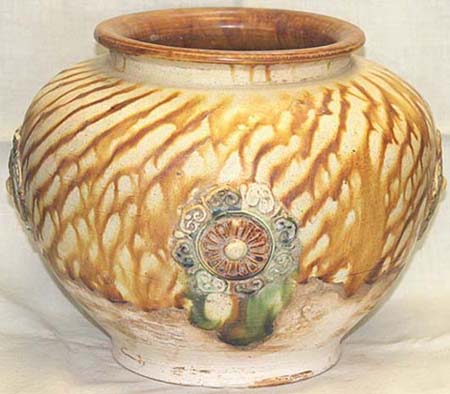 倣唐三彩貼花寶相文萬年壺(現代、AD1990〜2010)