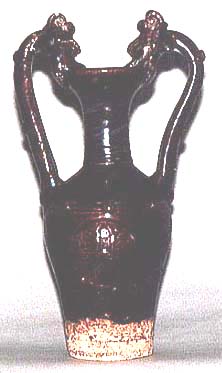 倣唐褐釉貼花文龍耳瓶(民國以後、AD1950〜1990)