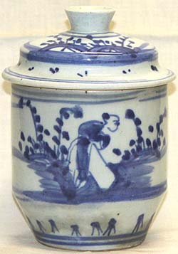青花人物臘梅文有蓋罐T(清末期時代、AD1875〜1911)