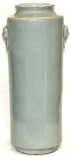 龍泉窯青磁獅子耳筒瓶(清末期時代、AD1875〜1911)