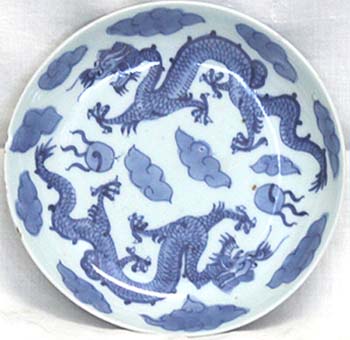 青花雙龍文皿(嘉慶年間、AD1796〜1820)