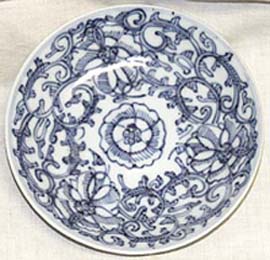 青花淡描花草文皿W(清中期時代、AD1796〜1850)