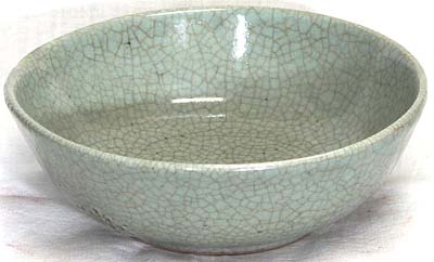 一見貫入の入った青磁鉢の様に見えるが松緑釉の鉢である。
