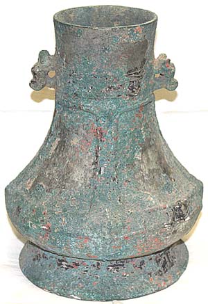 西周時代の青銅壺を模したもので、本来は蓋と耳に遊環が有
