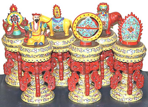 七珍の文官(前方左)・馬宝(後方中央)・象宝(後方右)・水珠(後方左)・火珠(前方右)の五