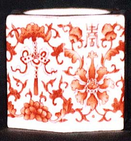 朱紅彩吉祥文六角薫爐(同治年間、AD1862〜1874)