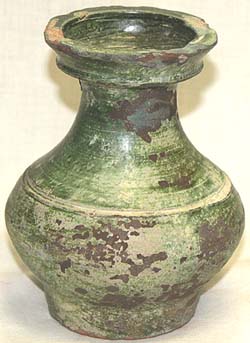 紅陶緑釉無文壺(後漢時代、AD25〜219)