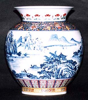 薄胎夾彩開光藍料山水文壺(光緒時代、AD1875〜1908)