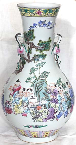 倣清粉彩唐子遊戯文桃耳天球瓶(民國時代、AD1912〜1949)