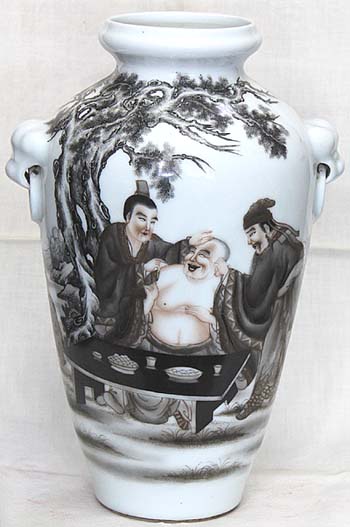 倣清墨彩唐三學士圖獅子耳洗口瓶(民國時代、AD1912〜1949)