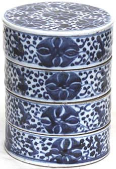青花花草文四托盒(雍正・乾隆年間、AD1723〜1795)