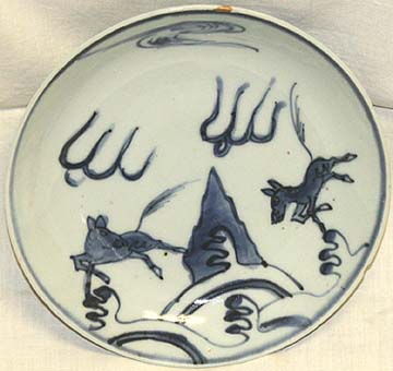 青花海馬文皿(清末期時代、AD1875〜1911)