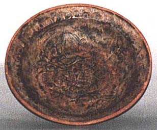 吉州永和窯黒釉刻花兔毫文皿(元時代、AD1279〜1367)