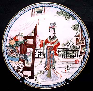 景徳鎭粉彩仕女図盤(民國以後、AD1987)
