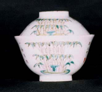 粉彩竹文有蓋碗(清後期時代、AD1851〜1874)