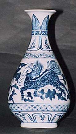 倣元青花麒麟鳳凰文玉壺春瓶(民国時代、AD1912〜1949)