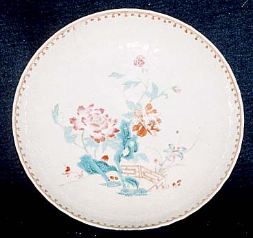 粉彩欄干花卉文盤(雍正年間、AD1723〜1735) |