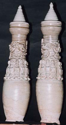 青白磁日月十二神瓶一対(元時代、AD1279〜1367)