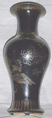 倣康煕黒釉金彩鳳龍文観音瓶(清末期時代、AD1875〜1911)
