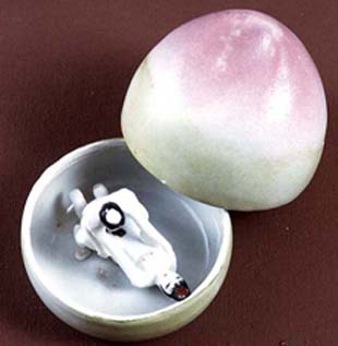 粉彩桃型男女交歓合子(民国時代、AD1912〜1949)